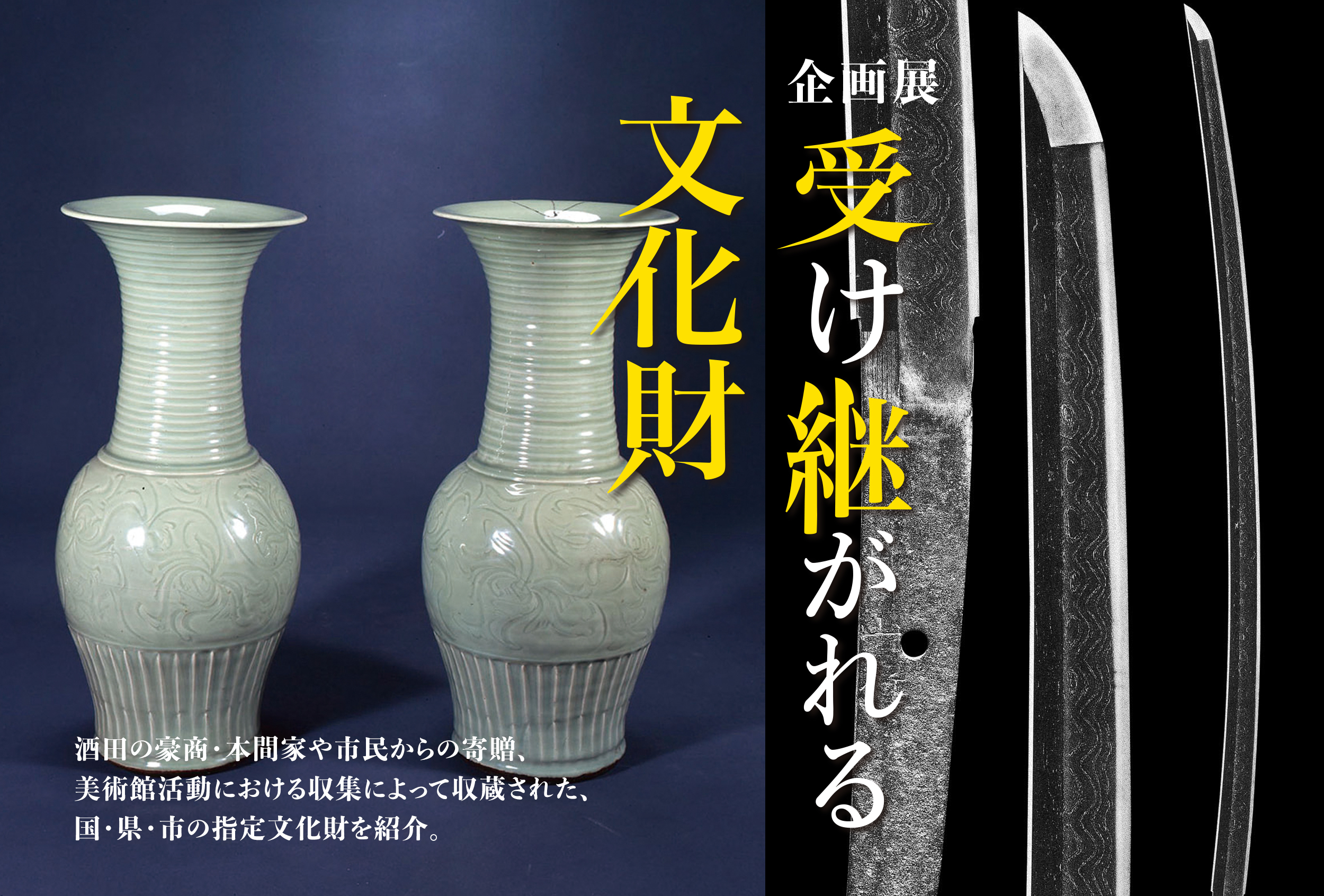 酒田の豪商・本間家や市民からの寄贈、美術館活動における収集によって収蔵された、国・県・市の指定文化財を紹介します。本間美術館でしかご覧いただけない本物の文化財を通して、地域の歴史や文化を見つめ直す機会になれば幸いです。
