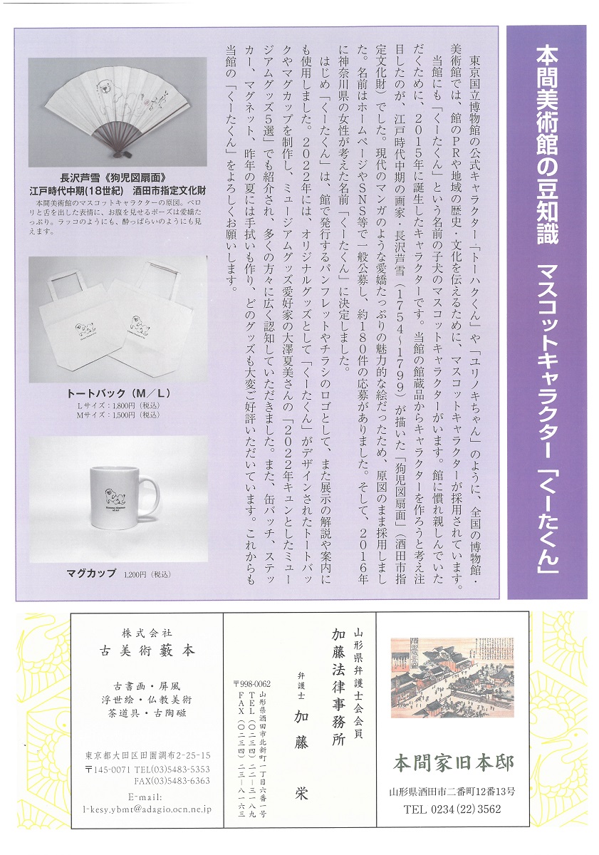 本展では、本間美術館が収蔵する書跡、絵画、工芸、郷土資料などの「迷品」を一堂に紹介します。あわせて、初代館長で日本刀研究の権威とされた本間順治の愛蔵資料も公開しますのでお楽しみ下さい。